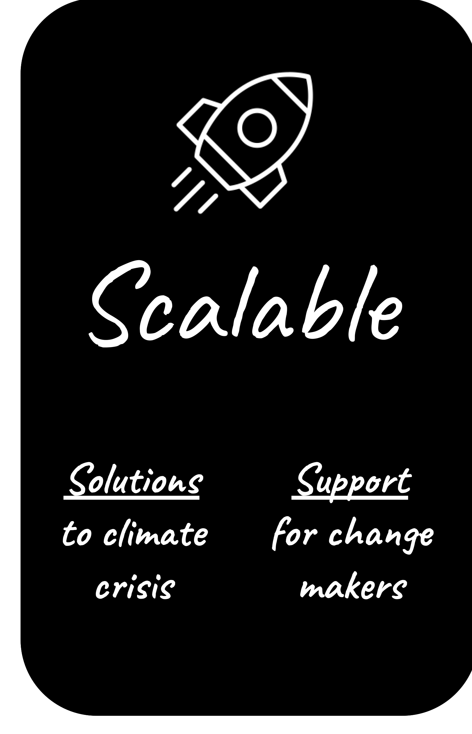 We believe we have a scalable model, both for supporting change makers and for addressing the climate crisis. We can move quickly and have a true impact if we eliminate financial barriers.